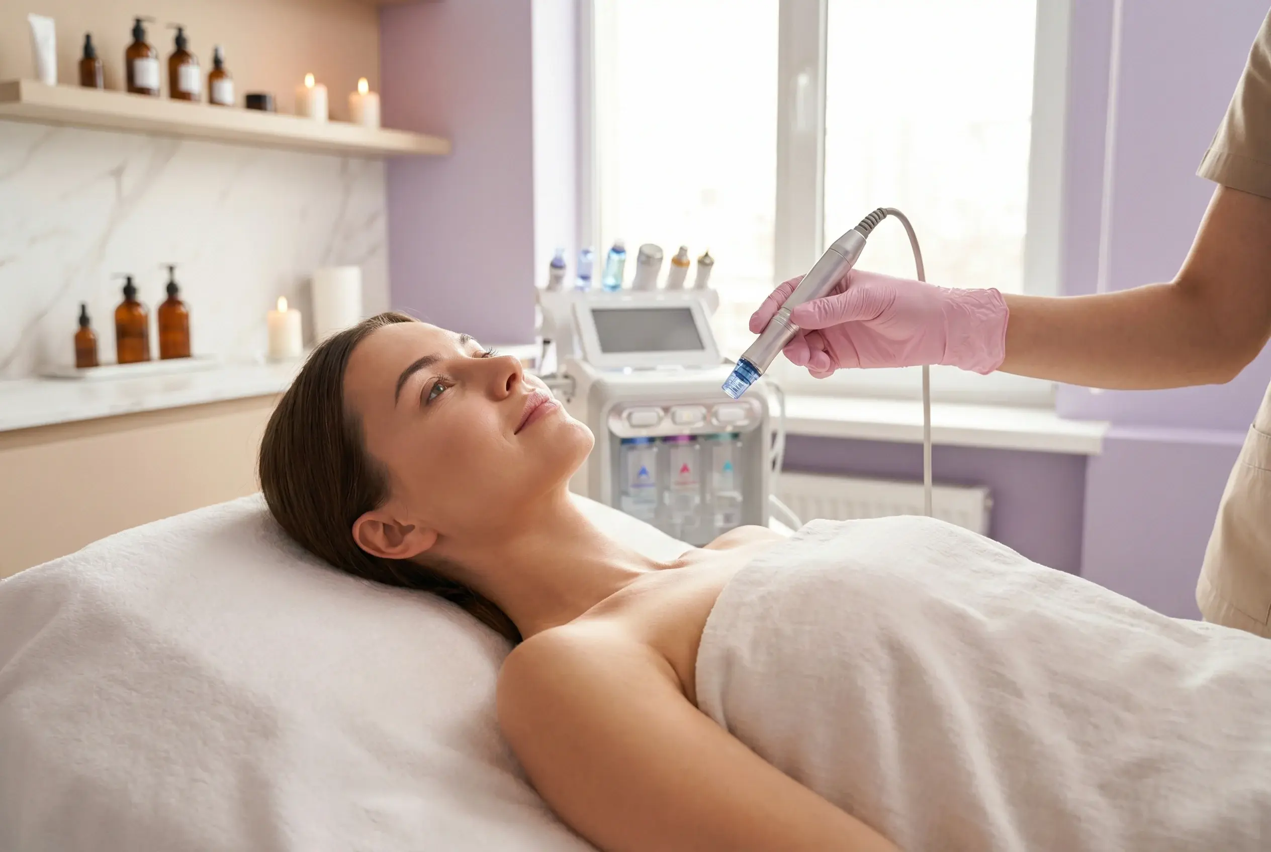 Тонкие микронидели стимулируют выработку коллагена, улучшают текстуру кожи и повышают эластичность – идеально для мелких морщин, шрамов или крупных пор.